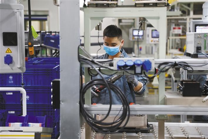 11月11日,陕西法士特智能制动系统有限责任公司,工人在生产线上作业。 记者 张辰摄