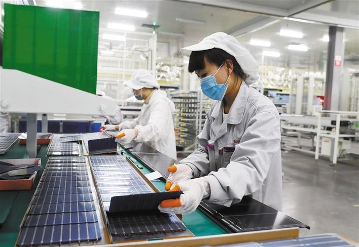 隆基5GW光伏组件项目是隆基股份在西北最大的生产基地。11月11日,工人在调试太阳能光伏板。 记者 母家亮摄