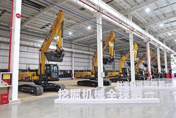 11月18日,三一西安产业园内整齐摆放着的挖掘机产品。 记者 张辰摄