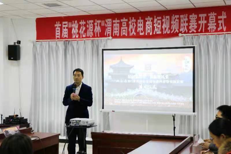 近日,由渭南师范学院与渭南市临渭区电商直播协会联合主办,渭南职业技术学院、陕西铁路工程职业技术学院、艾特渭南以及桃花源民俗文化园支持协办的首届“桃花源杯”渭南高校创意短视频联赛启动仪式在渭南市桃花源民俗文化园举行。渭南师范学院经济与管理学院党总支书记魏光民、渭南师范学院经济与管理学院院长李富荣、桃花源民俗文化园创始人王涛、渭南市电商直播协会会长潘文珍、渭南职业技术学院副院长张兴华、渭南市电商直播协会副会长王津、渭南职业技术学院电子商务专业副主任梁小丽以及参与比赛的15支队伍共计50余名学生参加了仪式。