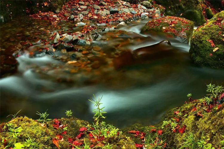 见了这里的红叶,你会被它们那顽强的生命力所折服。它们蓬蓬勃勃地生长于山崖上和峭壁间,哪里有一道石隙,哪里有一眼小洞,哪里就有它们飒爽的英姿。