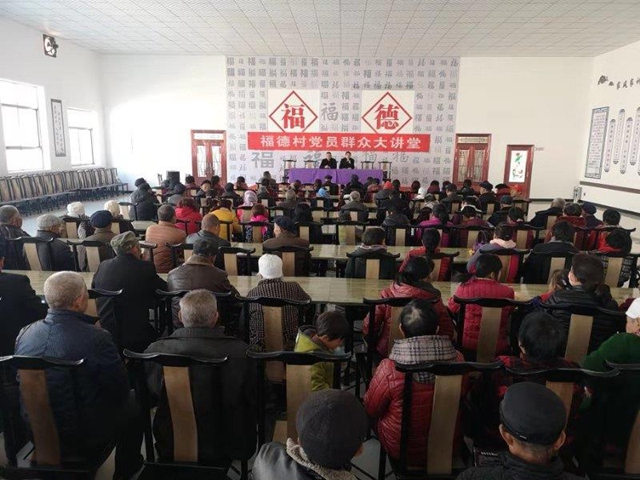 福德村建设文化广场、幸福院图书室,文化大礼堂,文化活动大礼堂,制作文化墙38块,每年召开“九九重阳节”表彰大会,评选出好公婆、好媳妇儿、大孝子、道德模范以及三八妇女节活动;开展晒家风亮家训和十星级文明户评选活动。