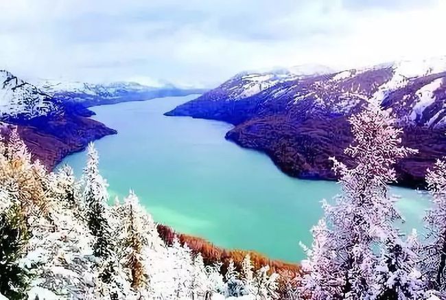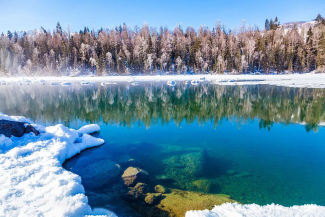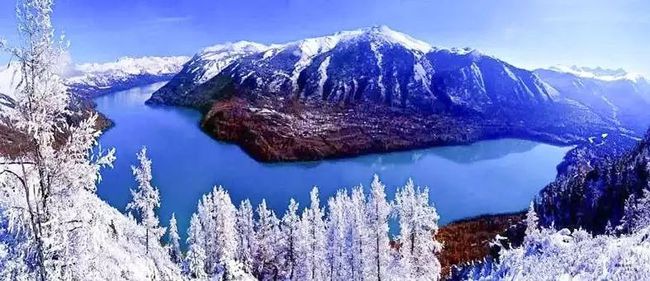 冬季的喀纳斯湖变得分外清晰美丽,白雪皑皑的雪峰