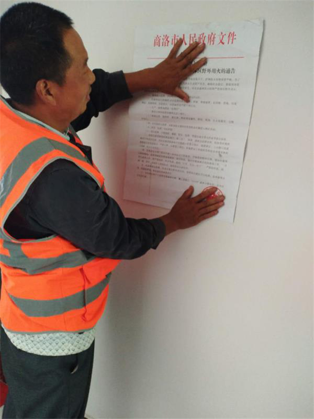 一条醒目的标语,护林防火、人人有责,这是护林 人的铮铮誓言,一个背包、一身护林马甲是他们工作的 真实写照。几年来,他心系责任区的一草一木,他可以 拍胸脯的说:“我护好了这片林地。”