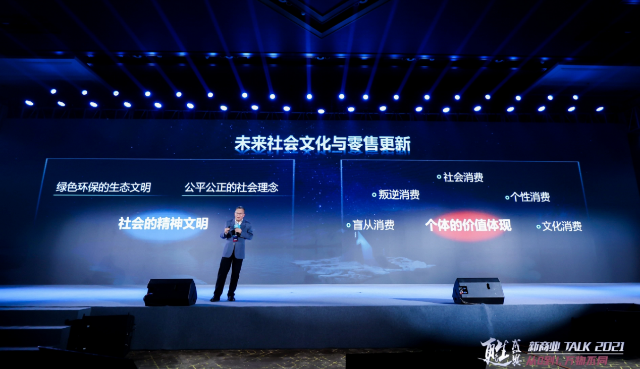 在新商业盛典现场,苏宁易购集团副董事长孙为民做了《未来零售更新》的主题分享。聚焦商品生产方式、数字技术设施、人口劳动变化和社会文明进步四个方面,对未来零售的交易场景的变革进行深入探讨。