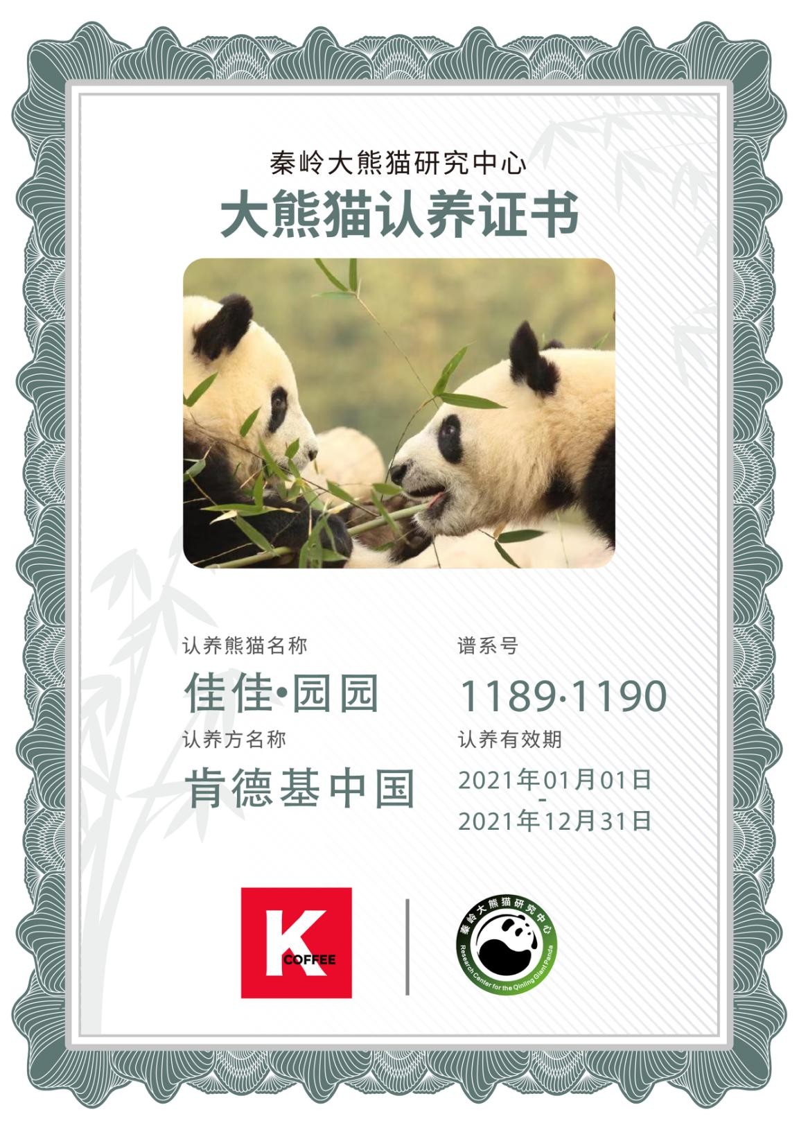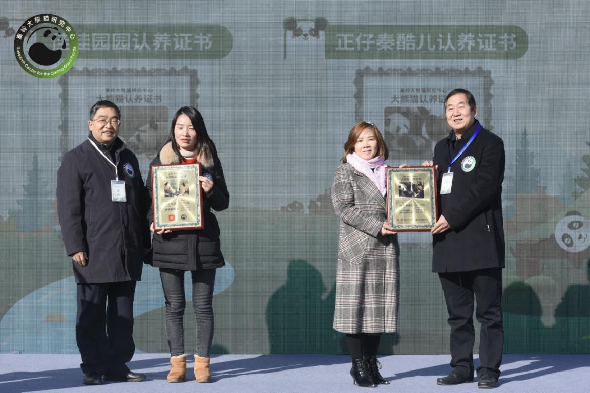 1月12日,在新生大熊猫“云庆生”活动现场,陕西省林业局副局长、省林业科学院党委书记刘保华,陕西省林业局副局长、省林业科学院院长昝林森向上海中信国际旅行社有限公司和肯德基中国颁发大熊猫认养证书。