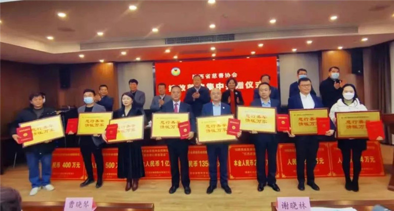 与会领导向捐赠企业颁发荣誉证书和纪念牌匾
