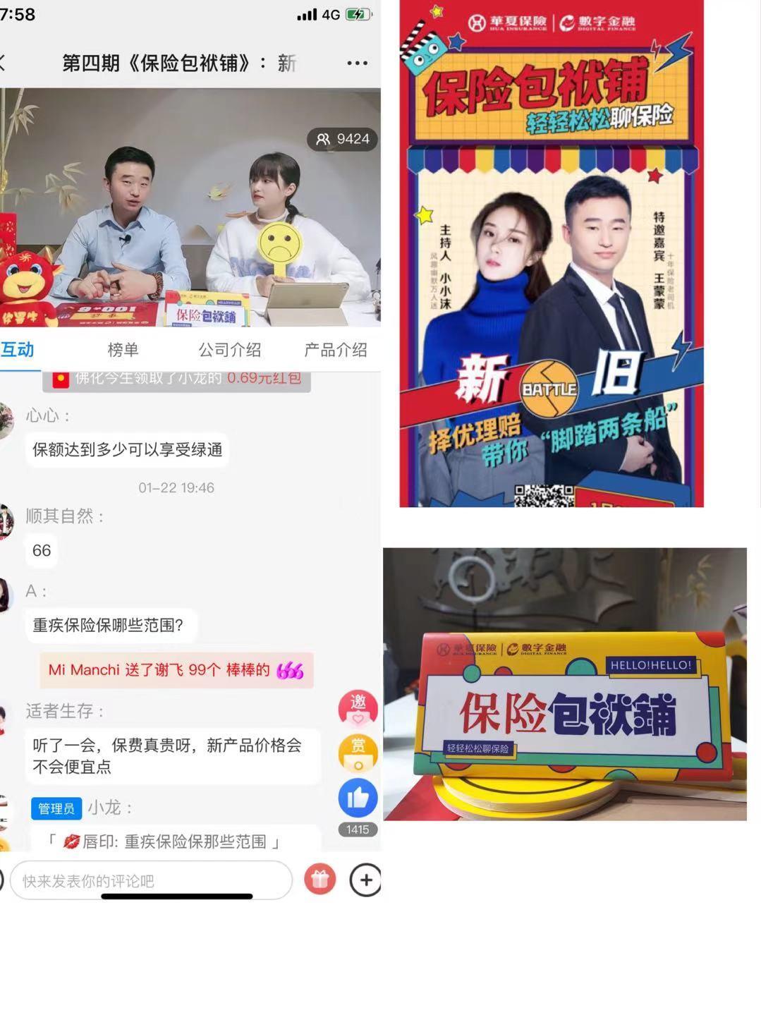近日,华夏保险陕西分公司数字金融处联合水滴筹推出保险包袱铺系列第四期《择优理赔,带你脚踏两只船》直播节目,影响热烈,受到广泛好评。