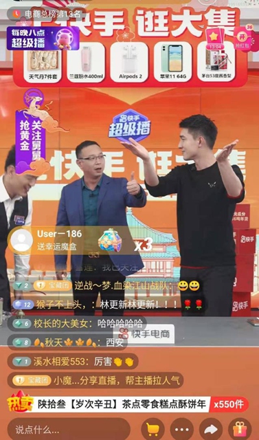 2月3日晚,“上快手,逛大集”超级播年货西安专场欢乐开播,国民舅舅王耀庆和帅裂苍穹林更新在直播间里,给全国粉丝带来各种颇具陕西特色的商品,不少陕西特产一上架就秒光。
