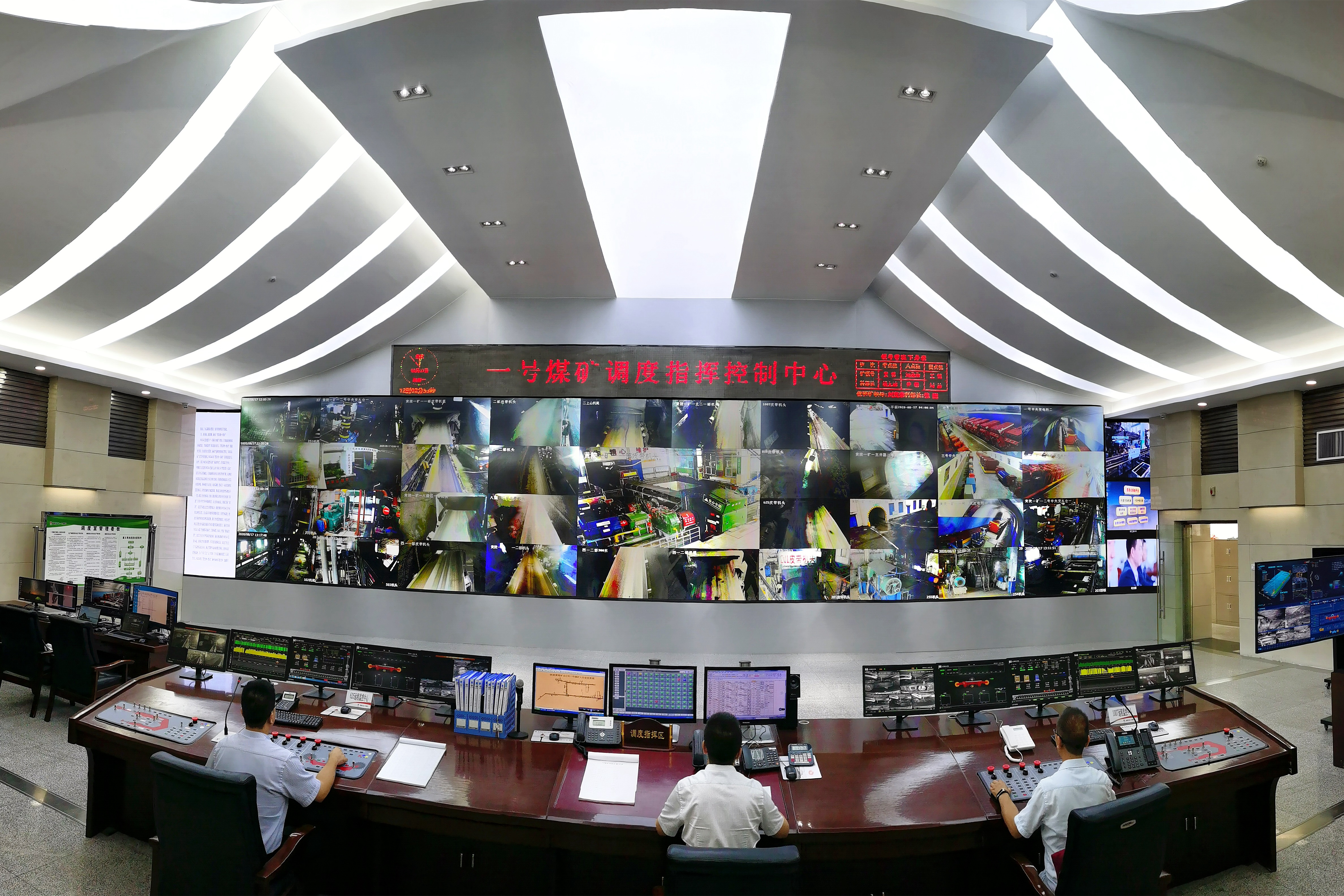走进该矿调度指挥控制中心,在显示屏上可以看到:上百台设备有序运转,从割煤、推溜、移架到运输,滚滚乌金“搭乘”皮带一路“欢歌”,畅通无阻地奔向目的地……唱响了该矿智能开采的“主旋律”。