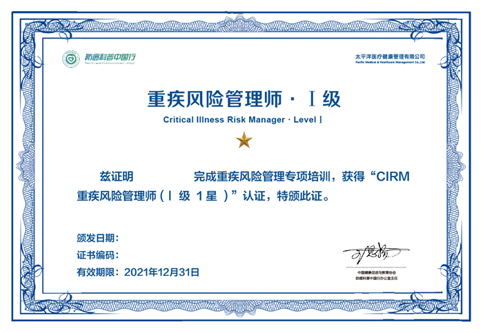 在重疾新定义发布的背景下,2020年12月,中国太保寿险与“防癌科普中国行”合作,率先在业界推出“重疾风险管理师CIRM”培训认证,使中国太保寿险的营销队伍掌握重疾定义修订背景、核心修订内容,以及甲状腺癌、乳腺癌等防治要点,从而能够专业、清晰地向客户传递重疾定义切换带来的影响,让更多的客户和家庭了解科学、有效的防癌解决方案,助力中国重疾的防治,助力健康中国。