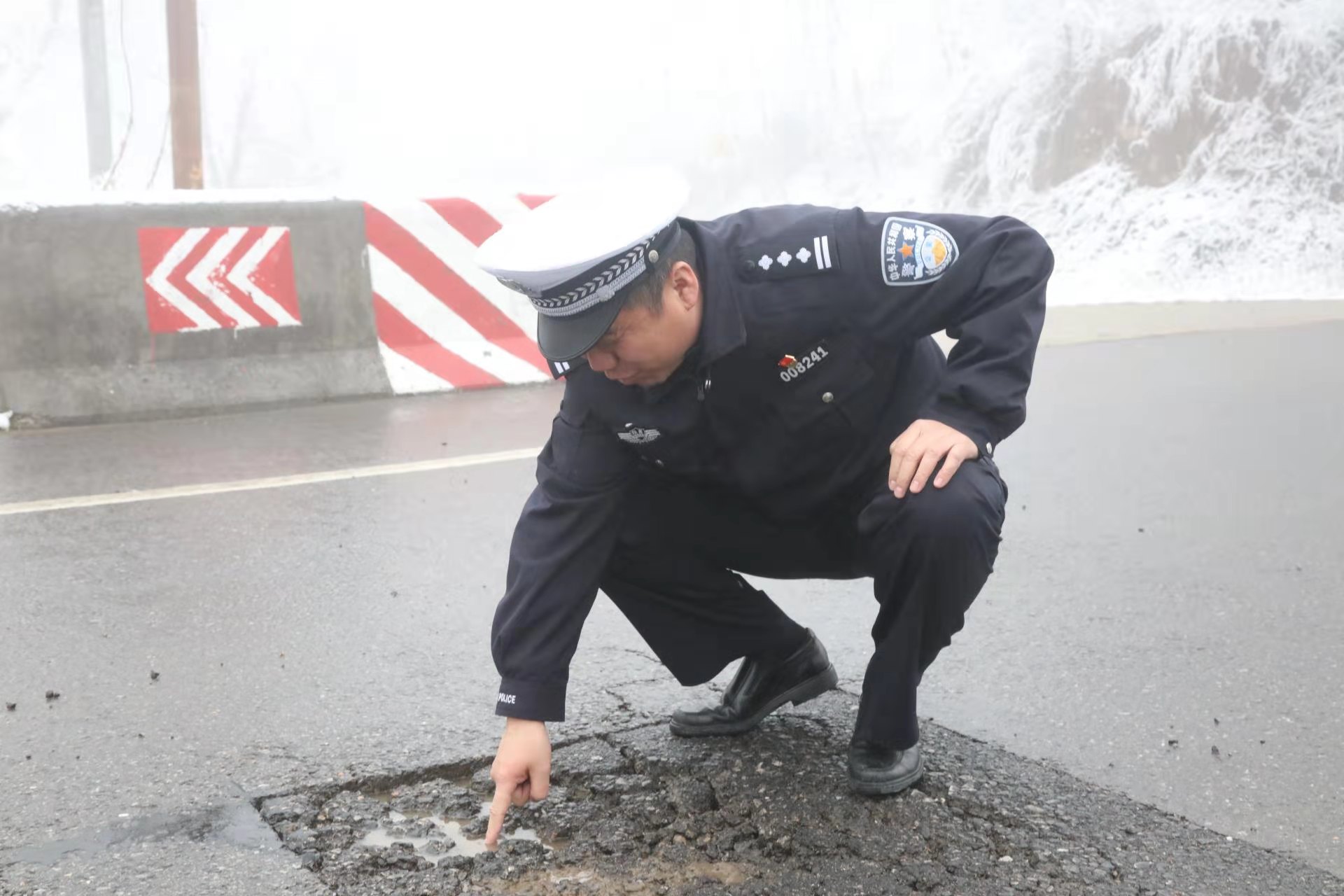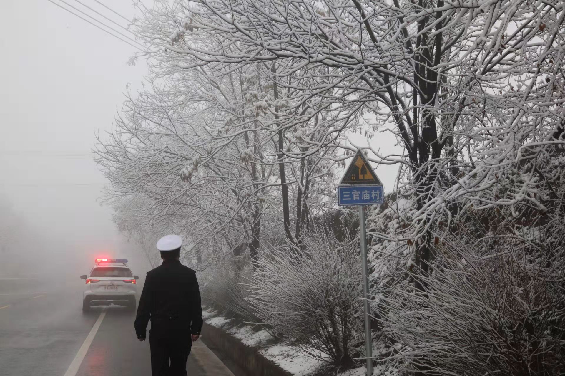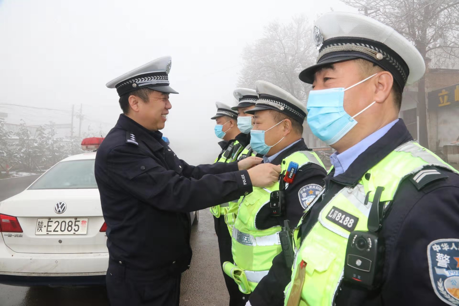 在西塬危险路段,副大队长牛卫星每经过一处桥梁,都要看桥面是否结冰,看到被大雪压折的树枝都要及时捡拾清理,唯恐落掉在路面上的障碍物引起发交通事故。在阳郭镇关中环线,牛卫星看到在山口执勤的闫村中队民警,牛卫星叮咛大家,一定要严查严防,同时随时提醒司机道路湿滑,降低车速,注意车距,打开雾灯,亮起车尾,他要求带班领导,提醒交警也保护好自身安全。