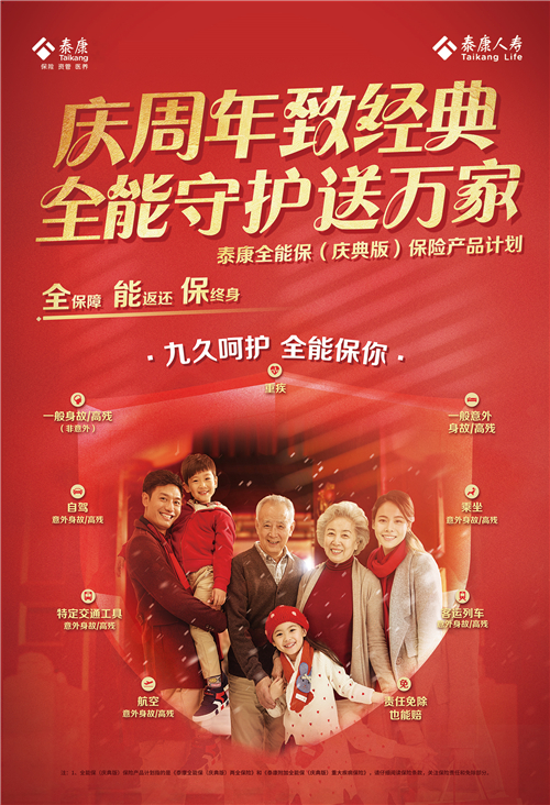 3月5日,泰康全能保(庆典版)保险产品计划隆重上市。该计划是泰康喜迎成立25周年之际,特别推出的首款定期返还所交保费的终身综合保障保险产品计划。