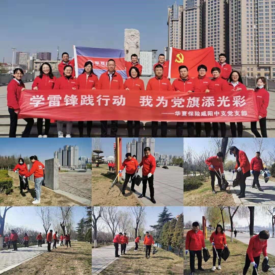 弘扬雷锋精神,真诚服务人民。3月3日上午,由华夏保险陕西分公司咸阳中支总经理徐达带领党员干部及入党积极分子组建的一支学雷锋队伍,从华夏保险陕西分公司咸阳中支出发,一路步行到咸阳统一广场,开展“学雷锋践行动,我为党旗添光彩” 捡拾垃圾美化城市主题党日活动。