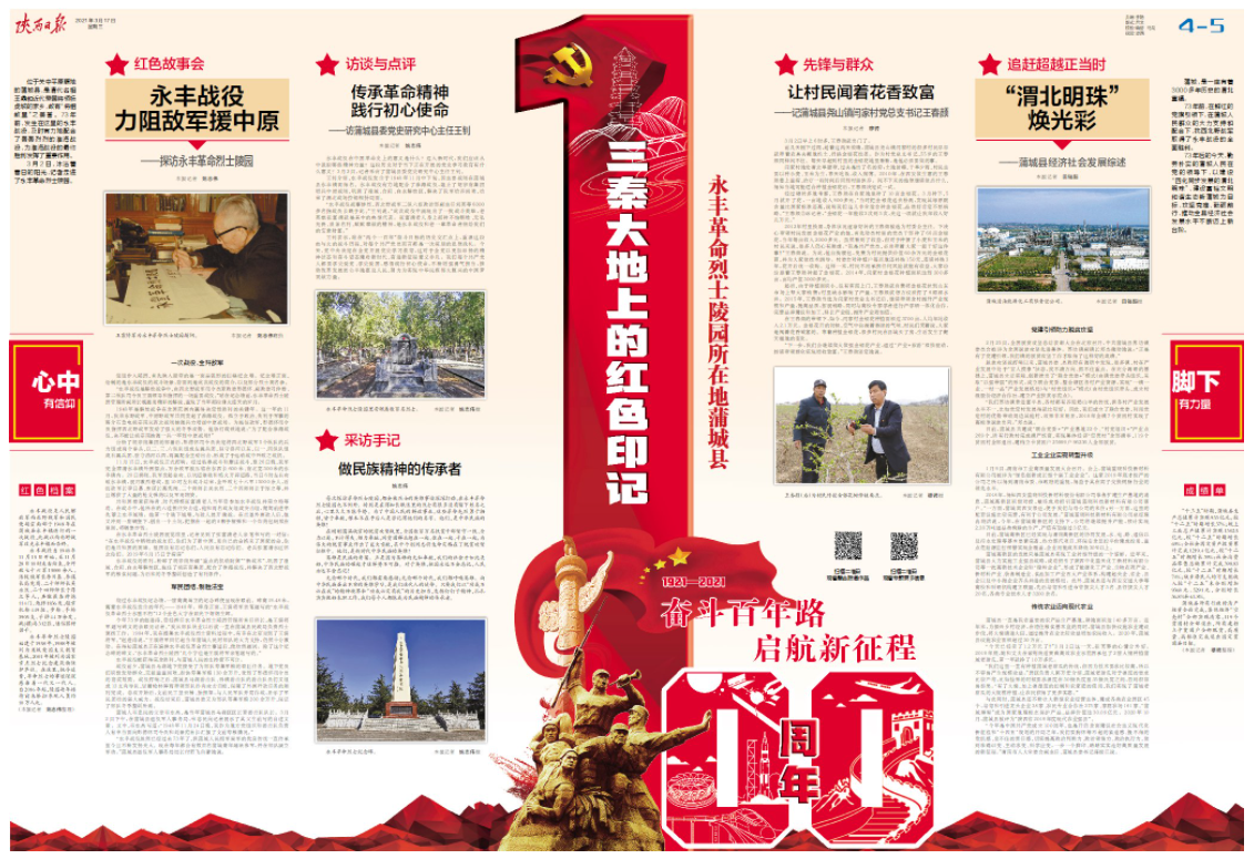 73年前,在鲜红的党旗引领下,在蒲城人民群众的大力支持和配合下,我西北野战军取得了永丰战役的全面胜利。