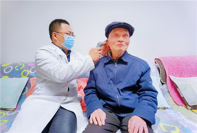 在得知该情况后,西安交大一附院医院耳鼻咽喉头颈外科眩晕团队,由主任张少强带队,支部书记陈阳静、副教授邢娟丽、李白芽博士等一行5人上门为老人复查BPPV(良性阵发性位置性眩晕),详细询问了老人的身体状况和生活情况,并为老人检查身体,提供了健康指导,赠送助听器,用真情实意和实际行动把党和政府对革命功臣的关爱之情送到老人的心坎上。