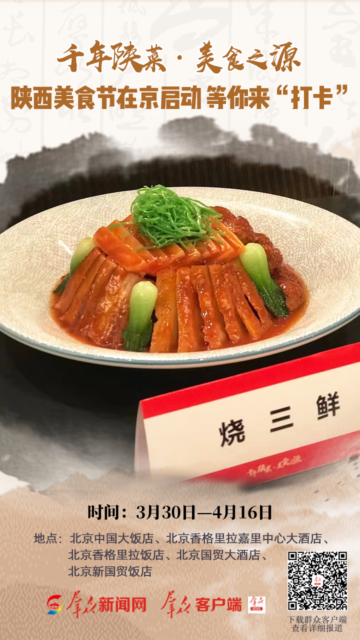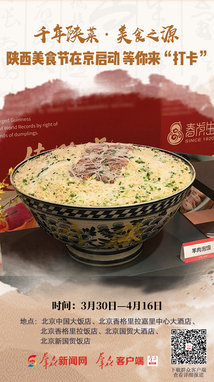 羊肉泡馍、蜂蜜凉糕、肉夹馍、大荔带把肘子……3月30日上午,几十种陕西美食亮相北京中国大饭店,陕西美食节活动正式启动。记者了解到,“陕西美食节”活动从3月30日持续至4月16日,为期三周,饕餮大餐,等你来尝!