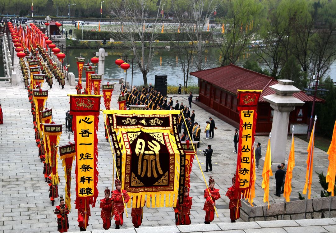 陕西省省长赵一德恭读祭文。之后,全体代表向轩辕黄帝像行三鞠躬礼。
