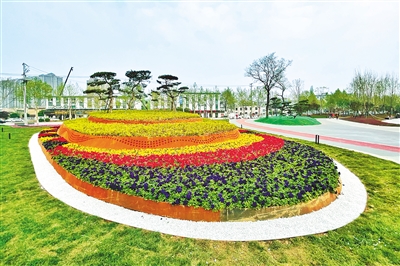 灞桥区锦带广场花团锦簇。
