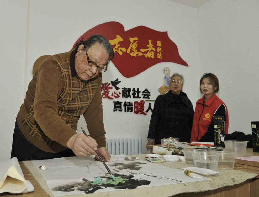 军休干部在享受社区各类服务的同时,也能找到施展自己才华,实现“老有所为”的平台。开设绘画、书法、插花等课程,丰富老年人的精神世界。社区还联合社会组织定期举办志愿服务活动,为老人免费理发、义诊,为社区高龄独居的老人提供上门家政服务等。“我们社区的居家养老服务站就像是一个开在家门口的‘养老院’,根据老人的需要,全方位为老人提供服务,满足老年人的需要。” 漳浒寨街道军干所社区党支部书记王静说。