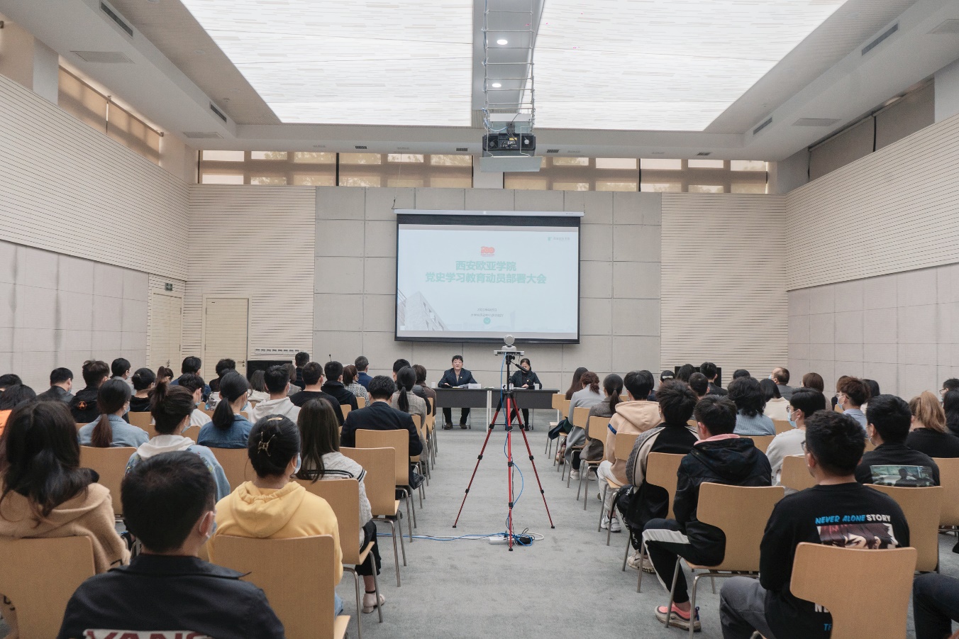 4月7日,西安欧亚学院举行党委理论学习中心组党史学习教育读书班开班式,邀请“全省党建工作样板支部”通识教育学院第一党支部书记赵小荣教授作专题辅导报告。校党(纪)委委员共同参加学习,校党委书记于孟晨主持会议并做交流发言。他表示,按照中央统一部署和省委、省委教育工委工作要求,学校及时制定了开展党史学习教育工作安排。要发挥党委理论学习中心组学习示范带动作用,先学一步,学深一层,通过党史学习教育,深刻认识中国共产党为什么“能”、马克思主义为什么“行”、中国特色社会主义为什么“好”,进一步坚定中国特色社会主义道路自信、理论自信、制度自信、文化自信,厚植爱党爱国爱社会主义情感,引导广大师生党员知史爱党、知史爱国。