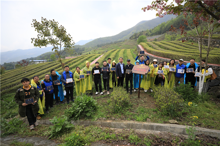 新华保险陕西分公司副总经理殷海峰与京康茶园董事长陈鸿昌在梯田五彩茶园共同为“新华保险专属茶园”揭牌,并为受邀参加活动的新华志愿者及媒体人授予“好茶推荐官”荣誉称号,希望大家为安康富硒茶和京康茶业代言,宣传推广特色茶旅小镇,助力乡村振兴建设。