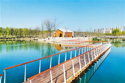4月,步入长安中央公园,抬头可见不远处的秦岭,低头便是灵动的河水,波光潋滟的水面,翠湖波影,叠石成景,目光所及之处,无不是一幅山清水秀的诗意画面。