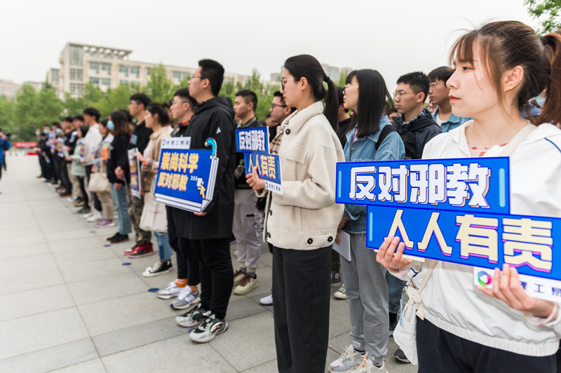 今年的4月15日是我国第6个全民国家安全教育日。按照中央部署和省委要求,省委教育工委、省公安厅决定今年在全省高校开展“三项教育”、推介“一个读本”系列反邪教警示教育活动,要求自觉把防范邪教向高校渗透警示教育工作作为认真践行总体国家安全观、创建平安文明校园的重要举措,融入思想道德教育、文化知识教育、社会实践教育各环节,更好地发挥高校立德铸魂和科学引领的主阵地作用,筑牢高校防范邪教渗透的铜墙铁壁。活动现场,广大师生参观反邪教宣传海报和展板,扫描关注“中国反邪教”微信公众号,学习反邪教知识,踊跃参与“对邪教说不”签名、有奖答题等活动。