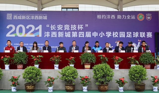 “相约沣西 助力全运”。4月15日上午,“长安竞技杯”西咸新区沣西新城第四届中小学校园足球联赛在沣西新城第四学校体育场开赛。本次赛事为期5天,来自沣西新城辖区内的23支中小学足球队共300余名球员将在绿茵场上恣意挥洒汗水,享受足球运动带来的快乐。值得一提的是,开赛当天,陕西长安竞技足球俱乐部球员杨昊、王尔卓也来到现场,与球员们互动。