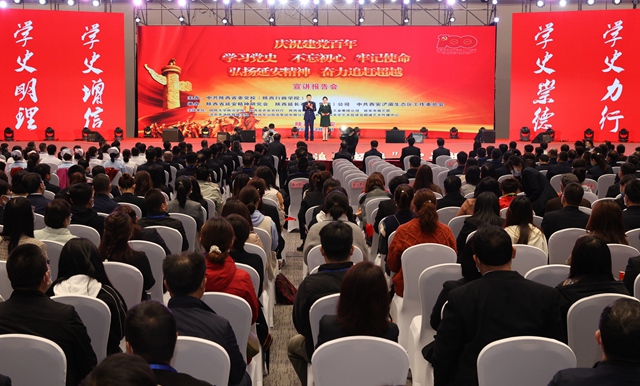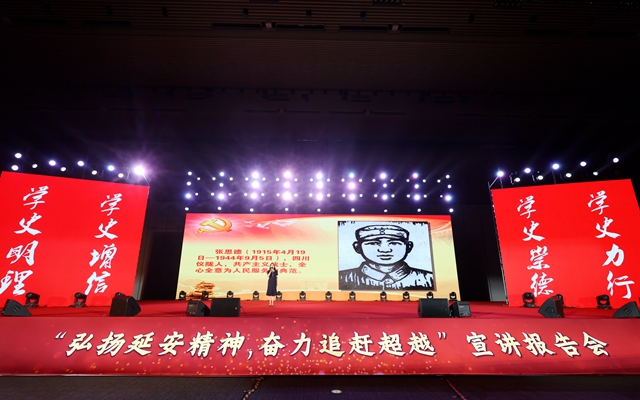本次宣讲报告会由中共陕西省委党校(陕西行政学院)主办,陕西省延安精神研究会、中共西安浐灞生态区工作委员会承办。报告会通过朗诵《全心全意为人民服务的楷模张思德》、叙事与歌唱相结合的《南泥湾的老镢头》、陕北说书《半碗饸饹》、歌曲《不忘初心》等节目。