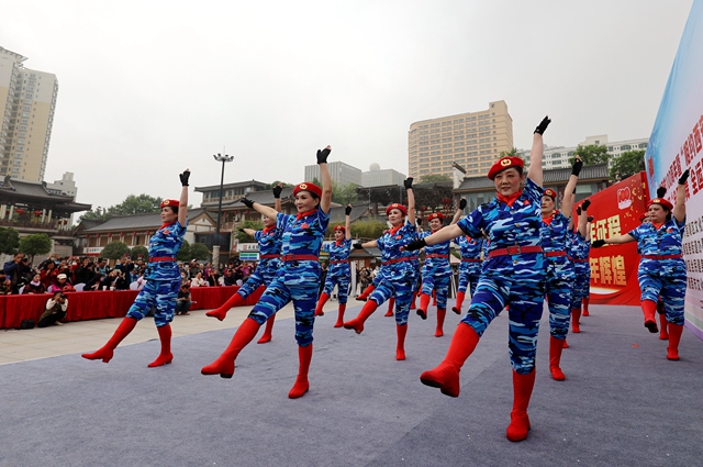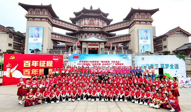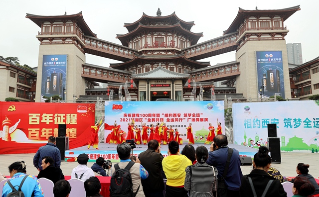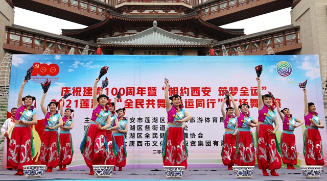 4月25日, “相约西安 筑梦全运”2021西安市莲湖区群众广场舞展演活动在大唐西市金市广场举行。来自辖区内的12支队伍共400余人参赛。