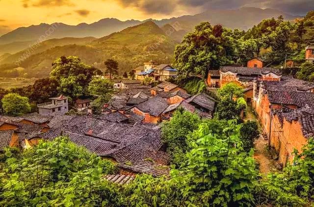 整个村落被青山古树环抱着