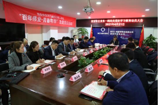 4月21日,新华保险西安中支党支部召开外勤党员大会,启动党史学习教育,30余名业务主任以上层级的外勤党员参加,西安中支党支部书记徐永刚同志参加会议并为外勤党员讲授党课。