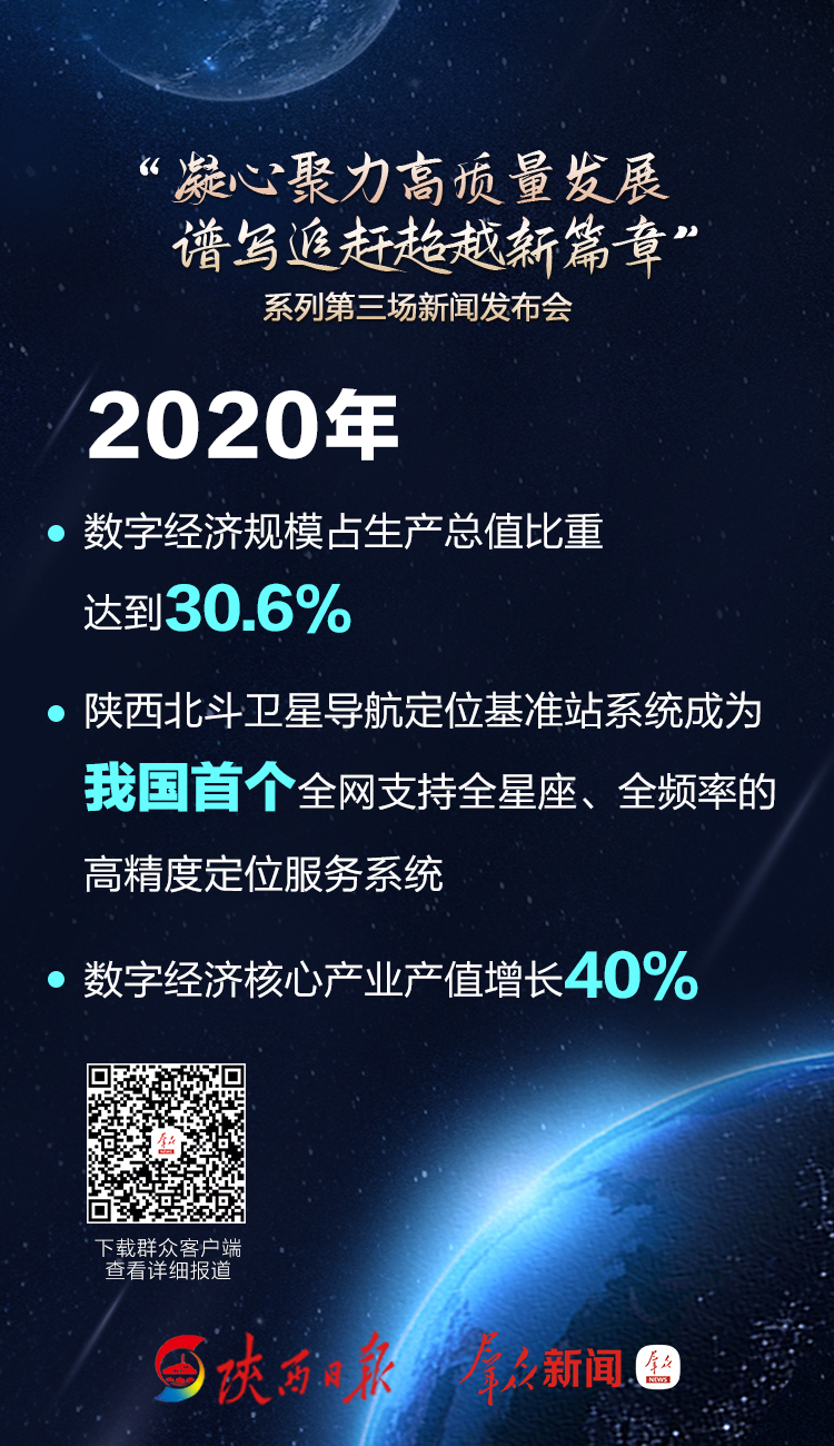 据介绍,2020年,陕西省认定省级数字经济示范区5个、示范园15个、示范项目15个,在孵企业近50000家、上云企业超过10000家,全省规模以上工业企业数字化研发设计工具普及率达到66.6%。围绕半导体与集成电路、云计算、大数据、物联网等关键领域部署形成创新链10条,建成投产三星二期、长安鲲鹏产业基地、咸阳8.6代液晶面板生产线等一大批重点项目。据测算,2020年,陕西省软件服务、计算机、通信和其他电子设备制造等数字经济核心产业产值增长40%。