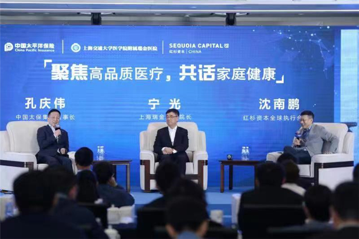 中国太保集团董事长孔庆伟、上海瑞金医院院长宁光、红杉资本全球执行合伙人沈南鹏就高品质医疗和家庭健康进行现场对话