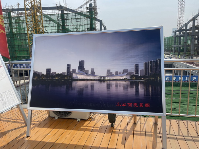 去年9月,西安市委、市政府决策建设长安书院,与灞河东岸的长安云、长安乐一起,共同组成“长安”系列文化项目。从去年11月进场施工以来,坚持节假日及24小时不停工,今年3月完成施工至正负零,目前地上钢结构部分已经开始屋面施工,预计7月底完成外幕墙安装,8月底实现泛光点亮。