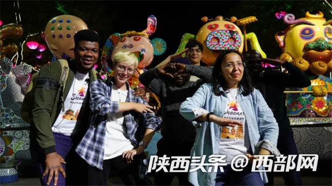 外国达人和中国游客一样“打卡”大唐不夜城。