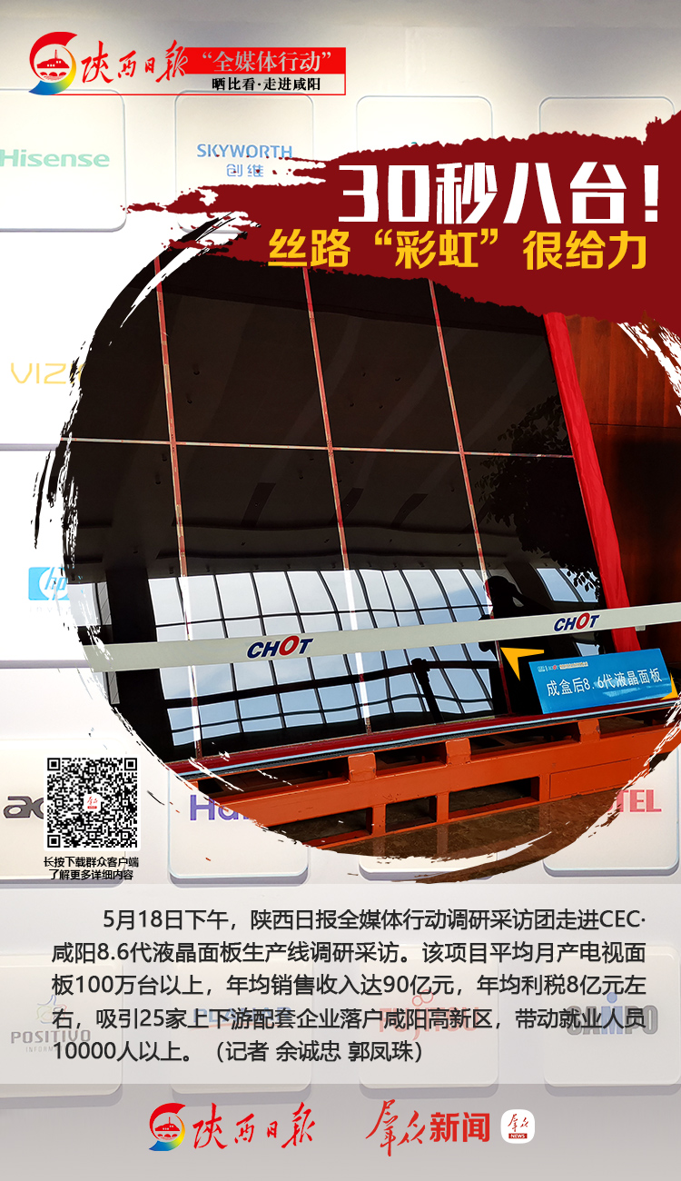 “这里是中国西北地区首条8.6代液晶面板生产线,是名副其实的‘丝绸之路第一板’,我们30秒可以造出8台最新型8.6代液晶面板。”5月18日下午,陕西日报全媒体行动调研采访团走进CEC·咸阳8.6代液晶面板生产线调研采访。