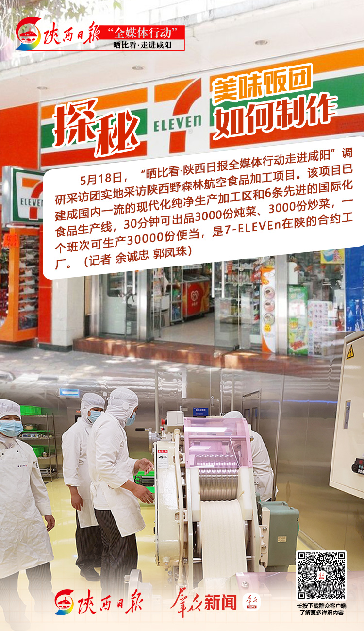 “米、面、菜、肉、便当、饭团……大家在7-ELEVEn品尝的美食由这里加工制造。”5月18日,“晒比看·陕西日报全媒体行动走进咸阳”调研采访团来到陕西野森林森永中央厨房项目实地采访。