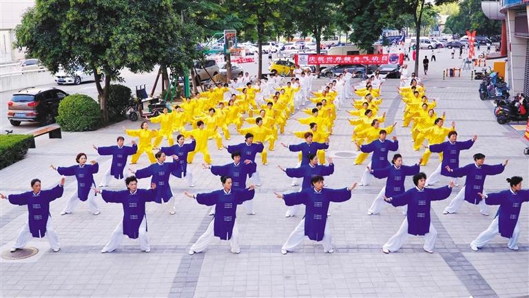 市民们在省体育场的健身气功站点积极参与锻炼。 照片均为记者 张江舟摄