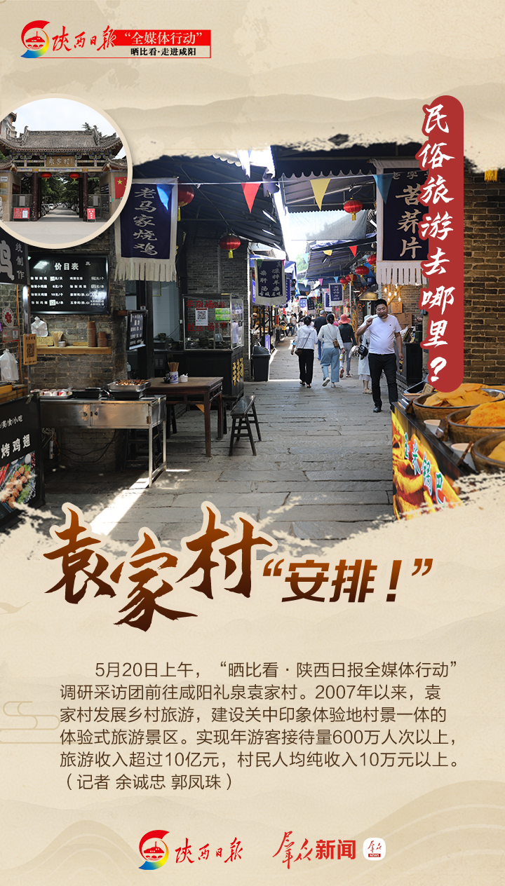 5月20日上午,“晒比看·陕西日报全媒体行动”调研采访团前往咸阳礼泉袁家村,探寻其“袁家村”品牌背后的致富密码。