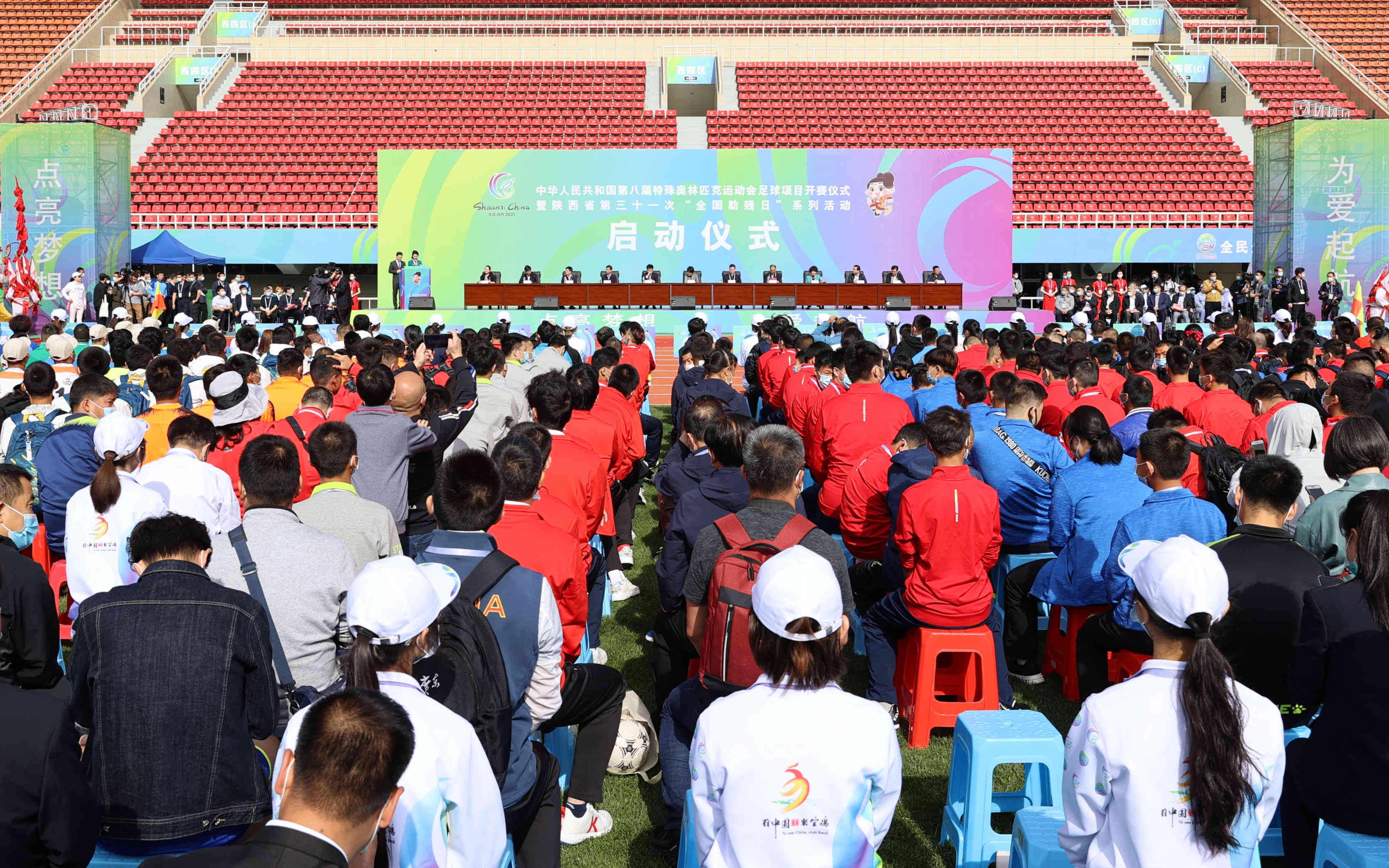 5月16日上午,陕西省第三十一次“全国助残日”系列活动启动仪式在宝鸡举行。副省长、残特奥会组委会副主任兼秘书长方光华出席并宣布中华人民共和国第八届特殊奥林匹克运动会足球项目开赛,中国残联副理事长、残特奥会组委会副主任王梅梅致辞,省政府残工委副主任、省残联理事长相红霞宣布同步启动全省第三十一次“全国助残日”系列活动。