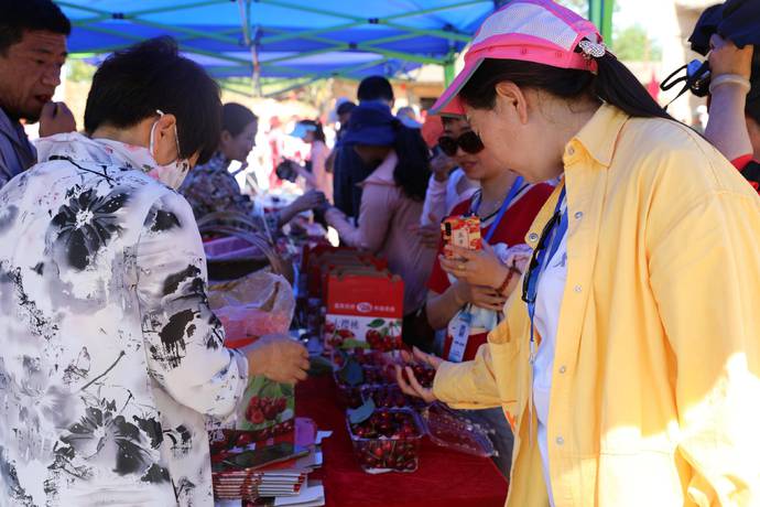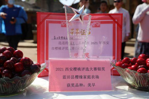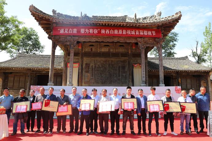 活动现场,果农们带来了红灯、岱红、美早等优质樱桃品种,嘉宾和游客们品尝到甜美的“春来第一果”大樱桃,蓝田县农业农村局、蓝田县文化和旅游体育局、西安温泉旅游度假区管理委员会共同为优质樱桃种植户颁发了证书,更是为参加本次展销会的果农们免费提供了100份演出套票,让果农们在闲暇之余也能感受白鹿原影视城的文化氛围。