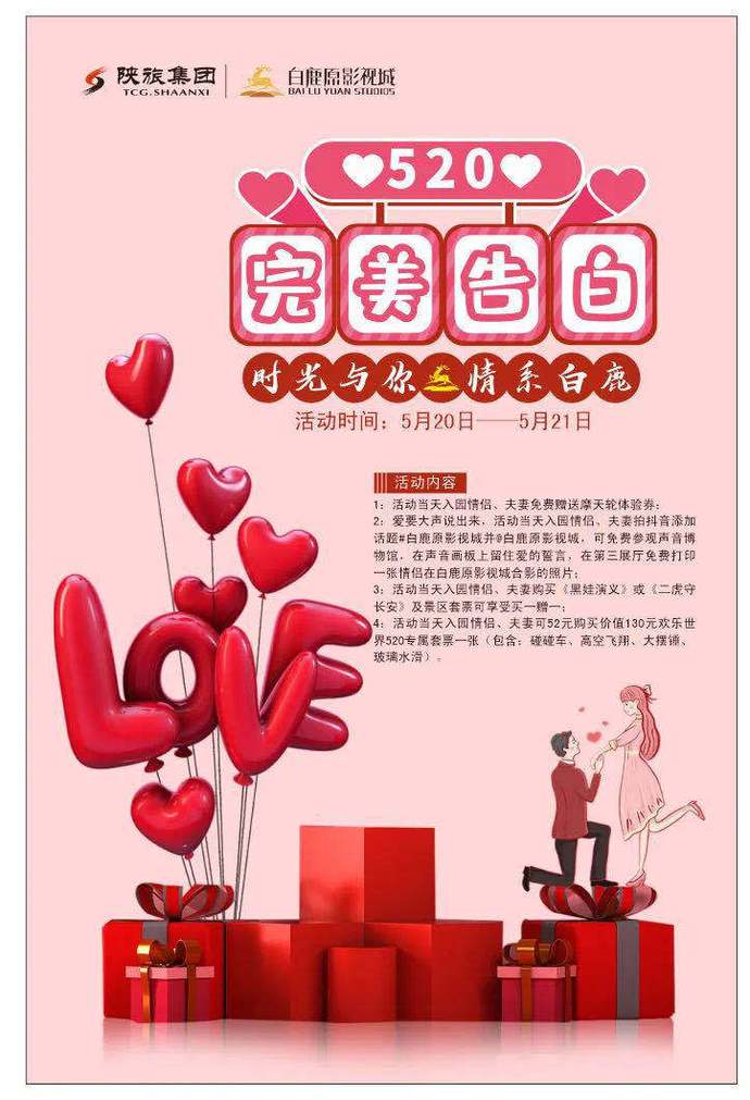 樱桃节遇上520,完美告白,甜蜜同行。5.20到5.21入园的情侣,免费体验摩天轮;拍抖音添加话题#白鹿原影视城并@白鹿原影视城,免费参观声音博物馆,在声音墙上留住爱的誓言,免费打印一张合照;购买演出《二虎守长安》和《黑娃演义》买一赠一;52元购买价值130元的欢乐世界520专属套票一张!!除此之外,白鹿原影视城也开启了夜游模式,纳凉避暑好去处,水景栈道两侧被璀璨的灯光点亮,聆听林中蝉鸣鸟语、夜莺声声……将身体的疲惫瞬间消散,且带来一丝凉爽和惬意。赶紧带着家人朋友相约白鹿原影视城吧!
