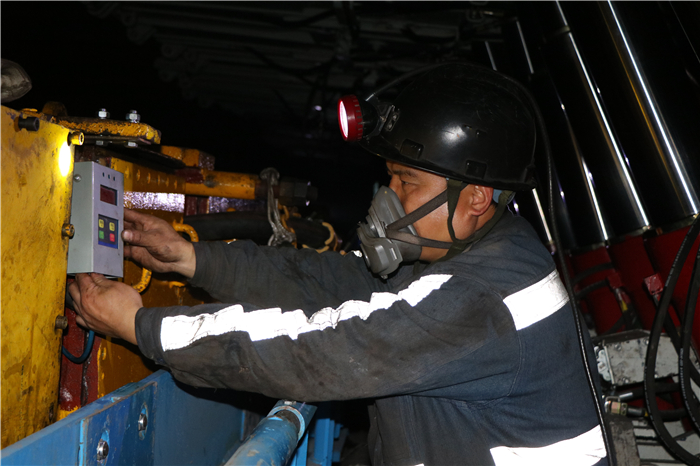 图为职工在井下现场作业
