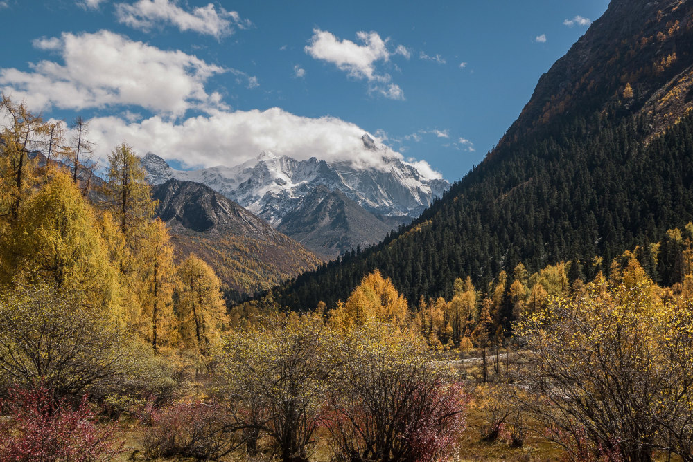 有神山护佑,有森林、草原冰河滋养,有虔诚的牧民,没有车流,没有喧嚣,有的只是人、动物、景色融为一体的浑然天成。