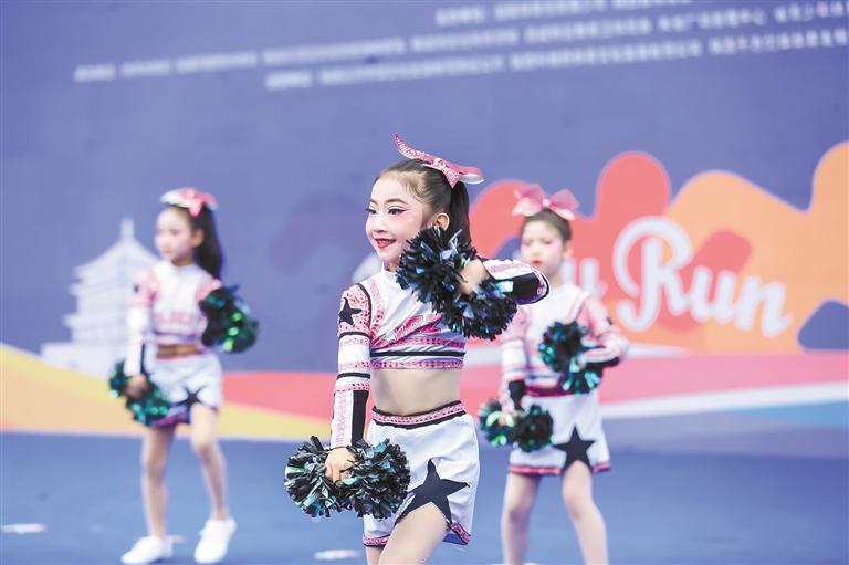5月29日,在省体育场东广场参加少儿啦啦操展演的孩子们。照片均为记者 张江舟摄