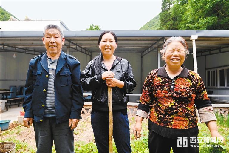 蓝田县汤峪镇脱贫户高恩维(中)说,他们家的日子芝麻开花节节高,欢迎大家来山里玩、尝农家饭。 西安报业全媒体记者 郝钟毓 摄
