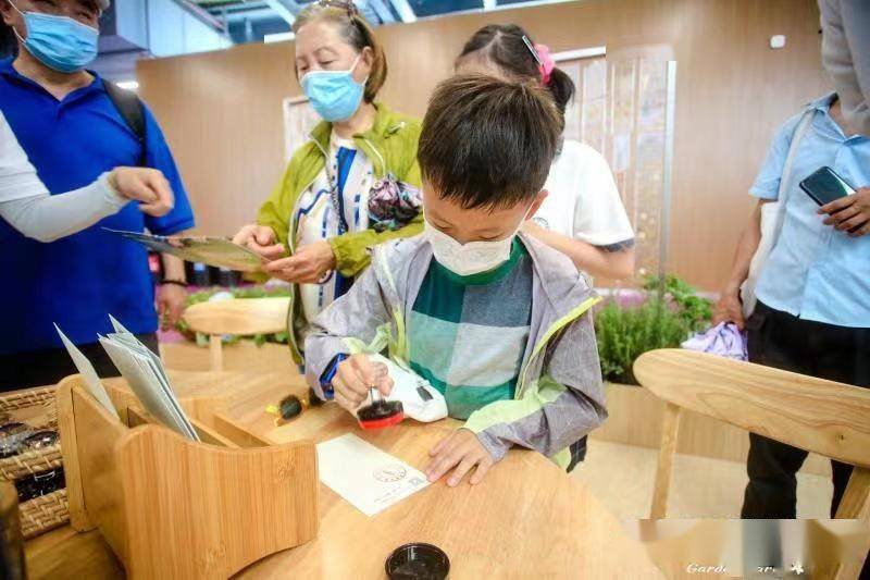 在太平洋保险花园第一打卡点,工作人员向每一个家庭送上了第一枚祝福印章:“第一个印章送给你,愿你拥有一天的快乐与好心情”。