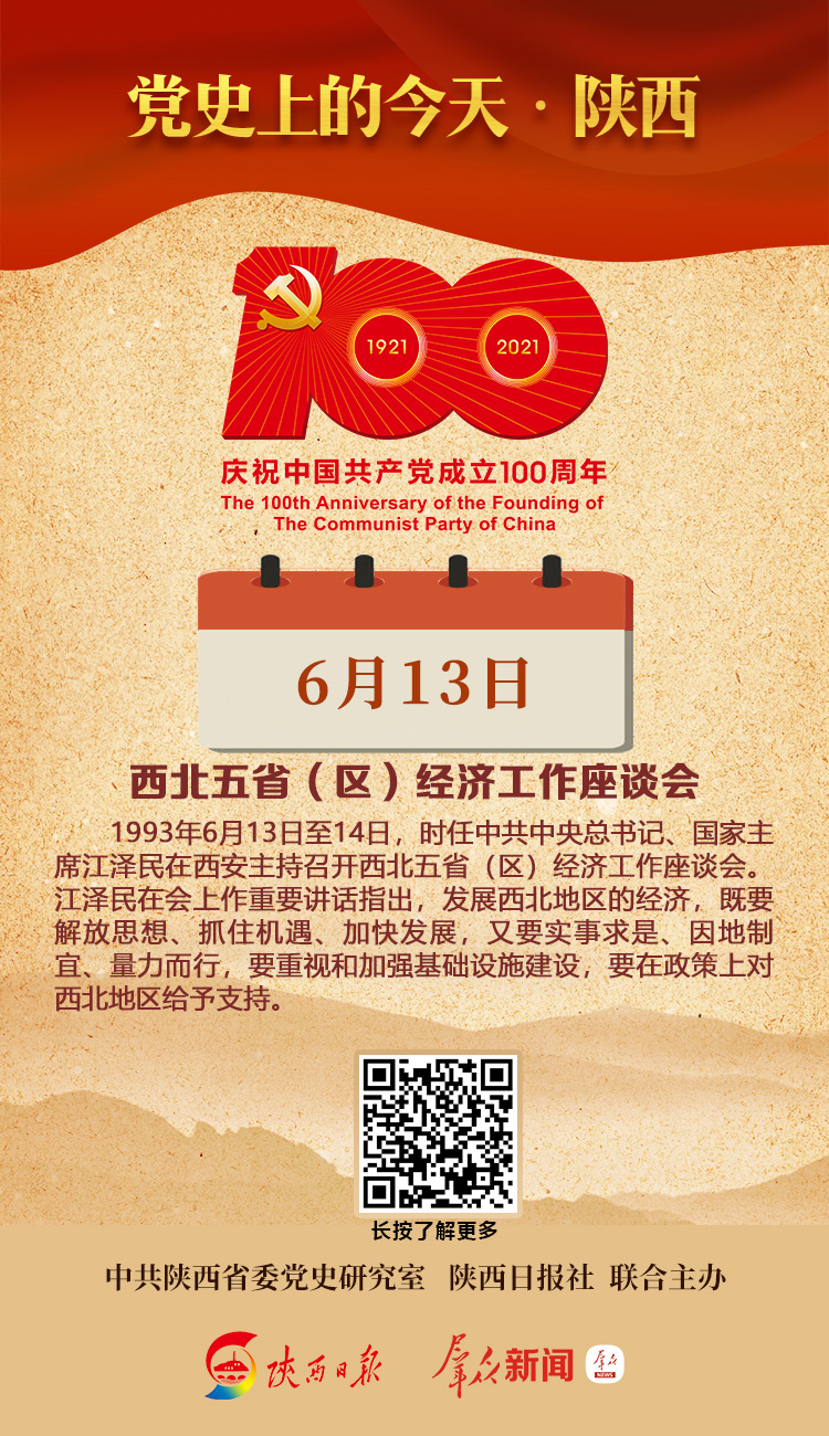1993年6月13日至14日,时任中共中央总书记、国家主席江泽民在西安主持召开西北五省(区)经济工作座谈会。江泽民在会上作重要讲话指出,发展西北地区的经济,既要解放思想、抓住机遇、加快发展,又要实事求是、因地制宜、量力而行,要重视和加强基础设施建设,要在政策上对西北地区给予支持。
